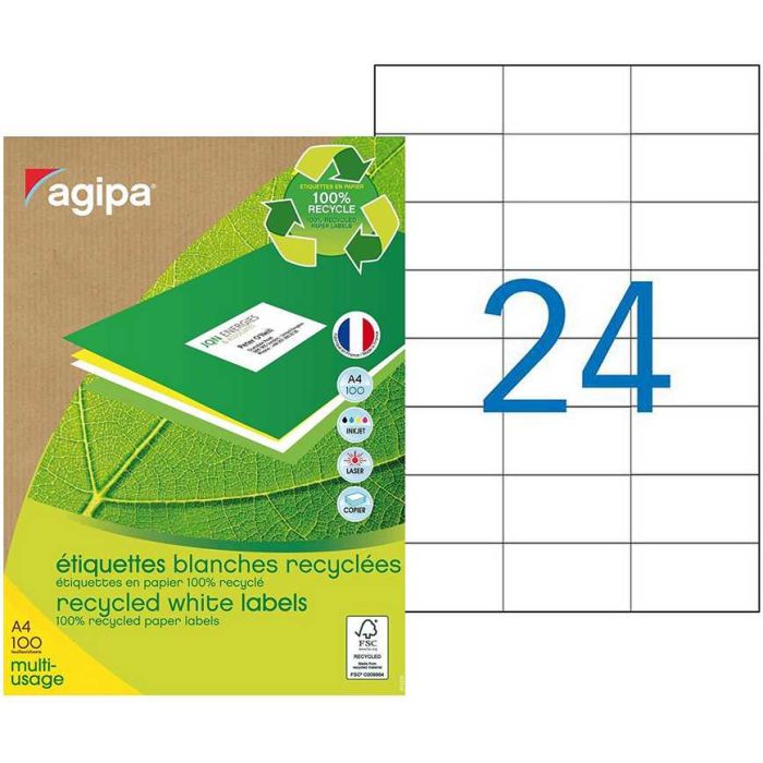 Étiquettes adhésives 70 x 37 mm - Papier Recyclé Blanc AGIPA Lot de 2400