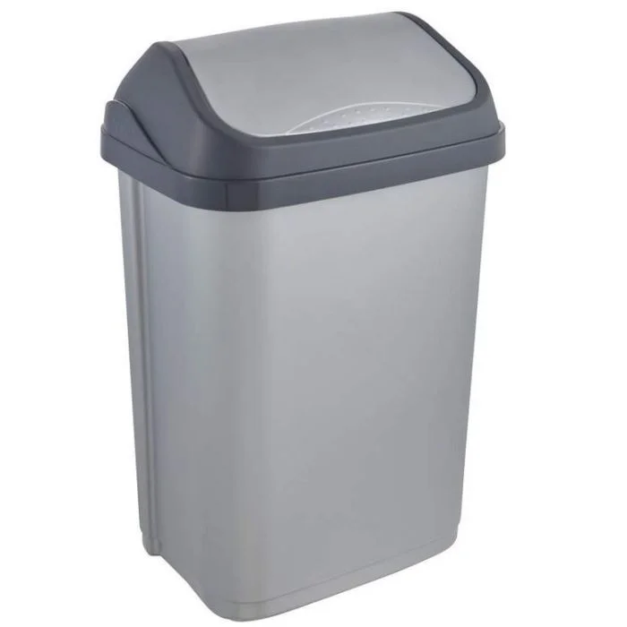 Poubelle 25 litres en plastique Argent/Graphite Swantje pour déchets avec couvercle basculable. Numéro article 1030716000000