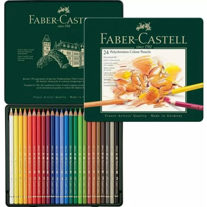 Boite de 24 crayons de couleur pour artistes Polychromos de FABER-CASTELL. Numéro article 110024
