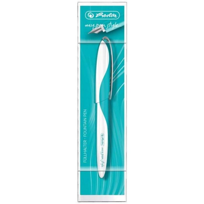 Stylo plume pour droitier et gaucher couleur Blanc/Turquoise HERLITZ My pen Caribbean Turquoise. Numéro article 300003329