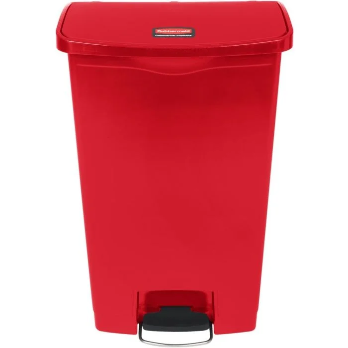 Poubelle 68 litres à pédale en plastique Rouge avec couvercle RUBBERMAID Slim Jim. Numéro article 1883568