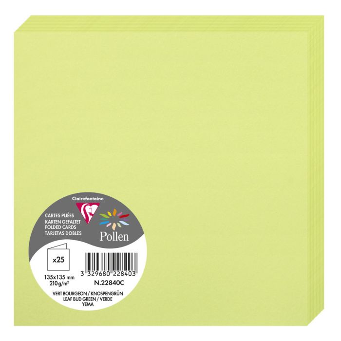 Cartes double en papier - 135 x 135 mm - Vert Bourgeon CLAIREFONTAINE Pollen Lot de 25