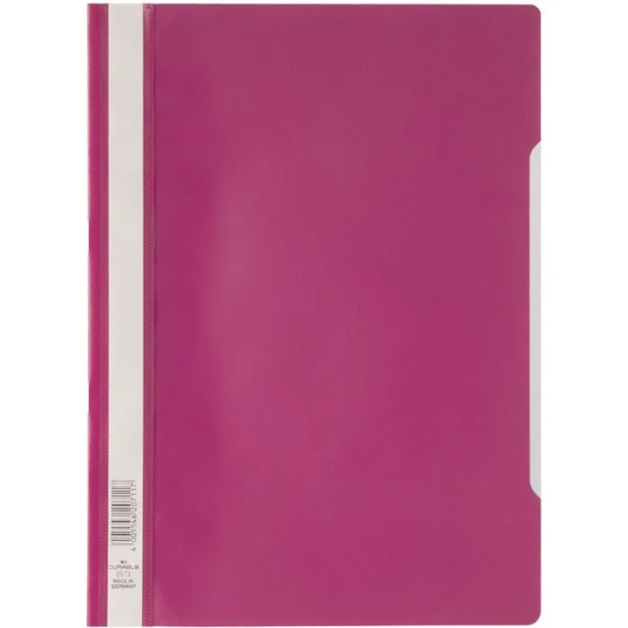 Chemise à lamelles s de présentation rouge pourpre DURABLE pour documents de format A4 avec une couverture avant transparente. Numéro article 2573-35
