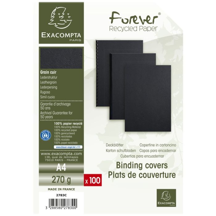 Couverture pour Reliure A4 - Carton - Noir EXACOMPTA Lot de 100