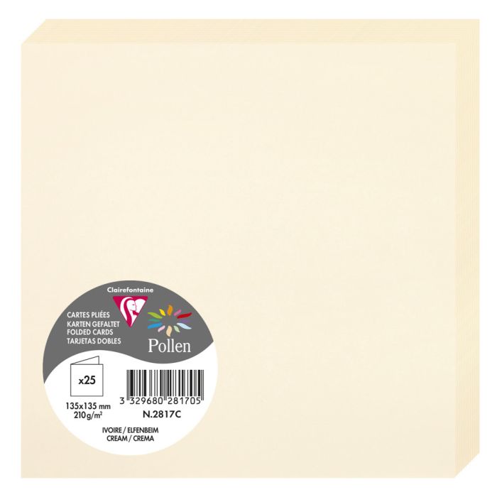 Carte double Pollen en papier 135 x 135 mm Ivoire CLAIREFONTAINE Pollen. Numéro article 2817C