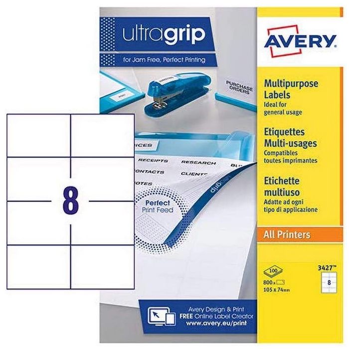 Étiquettes adhésives 105 x 74 mm écologiques pour un marquage de qualité de marque AVERY. Numéro article 3427