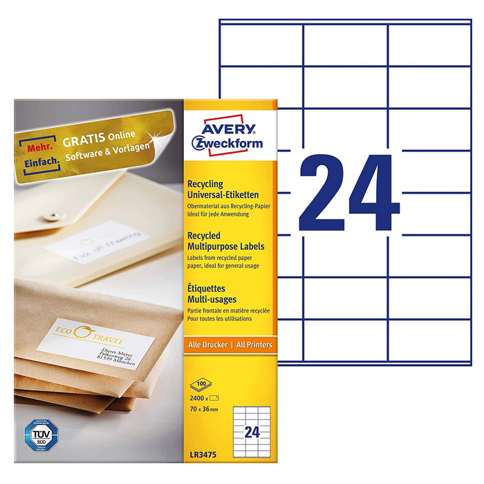 Étiquettes adhésives - 70 x 36 mm AVERY Ecologique Lot de 2400
