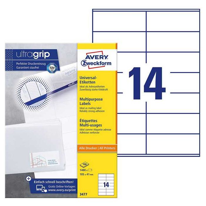Étiquettes adhésives écologiques 105 x 41 mm pour Enveloppes et un marquage de qualité AVERY. Numéro article 3477