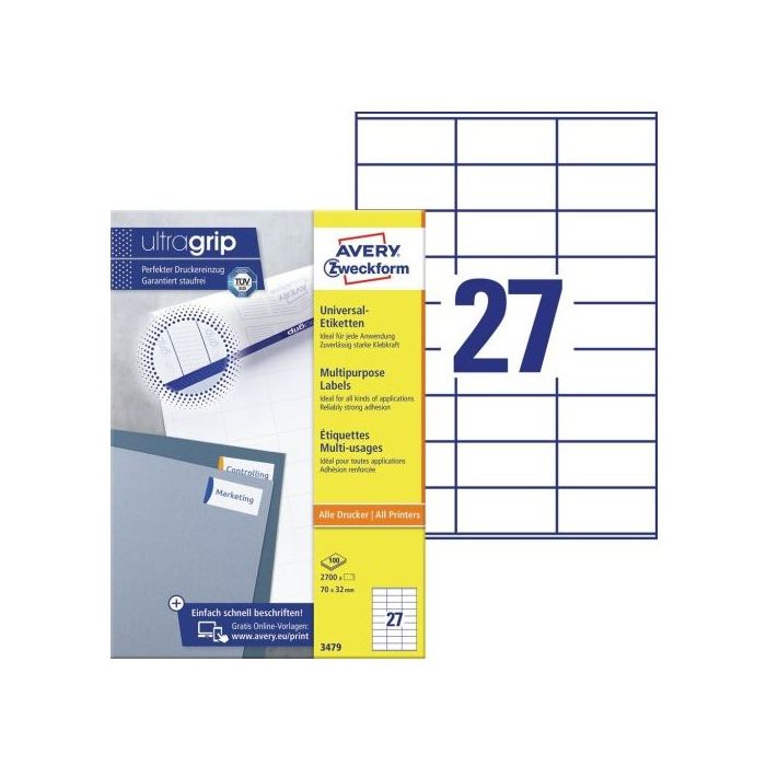 Étiquettes adhésives écologiques 70 x 32 mm pour un marquage de qualité AVERY. Numéro article 3479