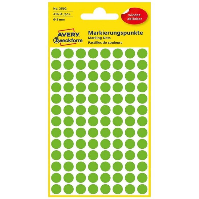 Pastilles adhésives amovibles - 8 mm - Vert AVERY Lot de 416