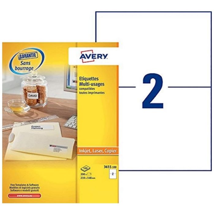 Étiquettes adhésives A5 - 210 x 148 mm AVERY Ecologique Lot de 200