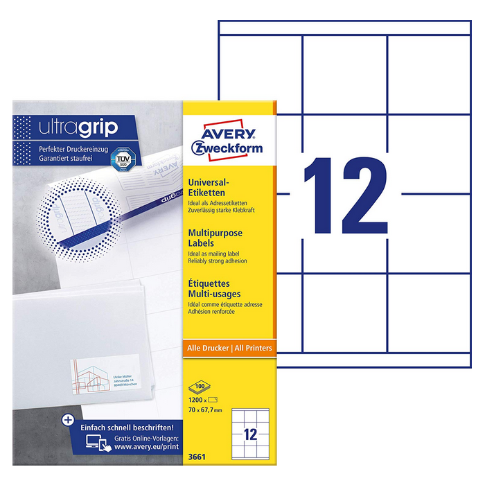 Étiquettes adhésives - 70 x 67,7 mm AVERY Ecologique Lot de 1200