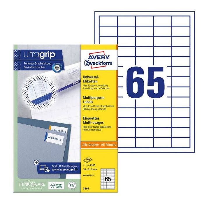 Étiquettes adhésives écologiques 38 x 21,2 mm pour un marquage de qualité AVERY. Numéro article 3666