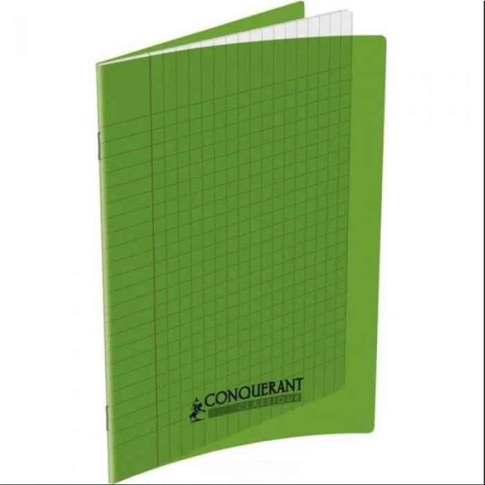 Cahier à Grands carreaux 240 x 320 mm avec une couverture en Polypro Vert CONQUERANT de 48 pages. Numéro article 100902157