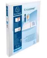 Classeur blanc personnalisable avec 2 pochettes extérieures avec 4 anneaux de 30 mm pour les documents A4. Numéro article 49703