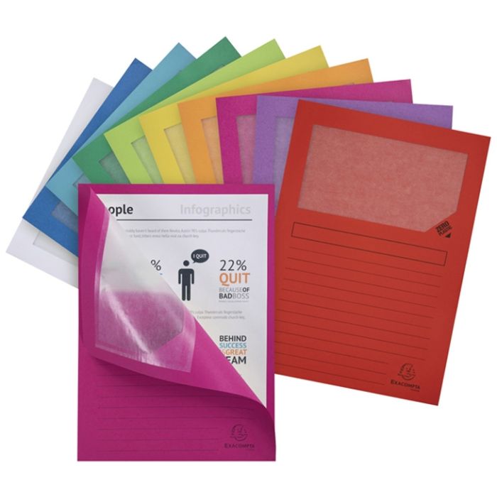 Assortiment de chemises à fenêtre pour dossiers commerciaux et administratifs EXACOMPTA Forever. Numéro article 50250E