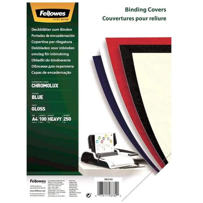 Couverture pour Reliure - Carton Blanc Chromolux FELLOWES Lot de 100