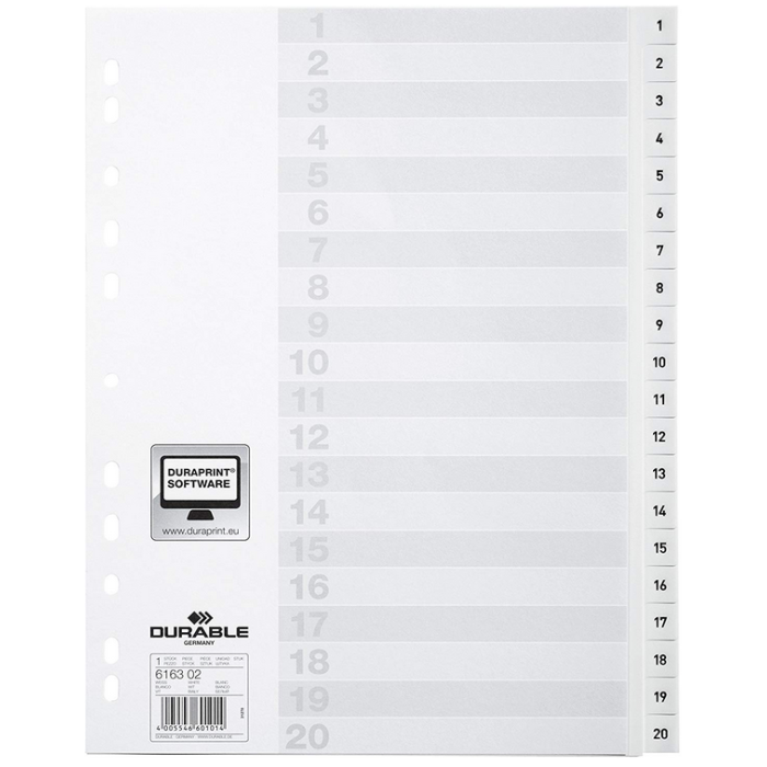 Jeu de 20 Intercalaires numériques en carte blanche - 1 à 20 - 223 x 297 mm EXACOMPTA MWD1-20ZRéférence : 8701737