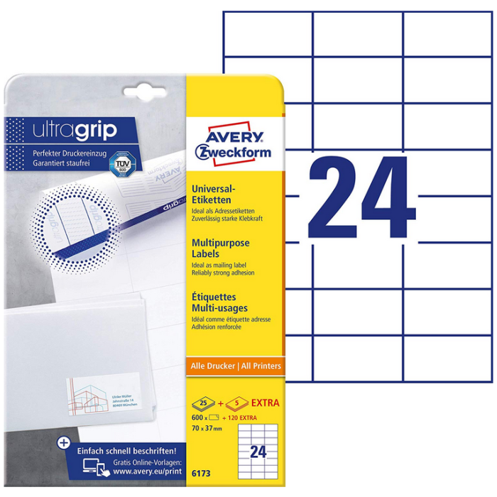 Étiquettes adhésives - 70 x 37 mm - Blanc AVERY Lot de 720