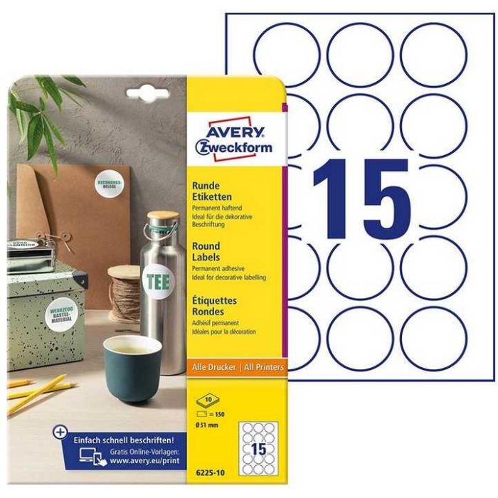 Etiquettes autocollantes rondes - 51 mm - Blanc AVERY Lot de 150