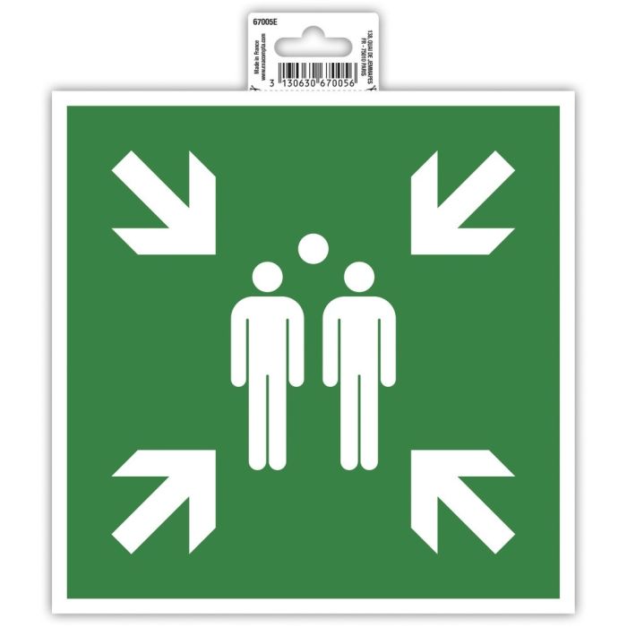 Panneau de signalisation adhésif pour marquage mural du lieu de regroupement - Point de rassemblement. Numéro article 67005E