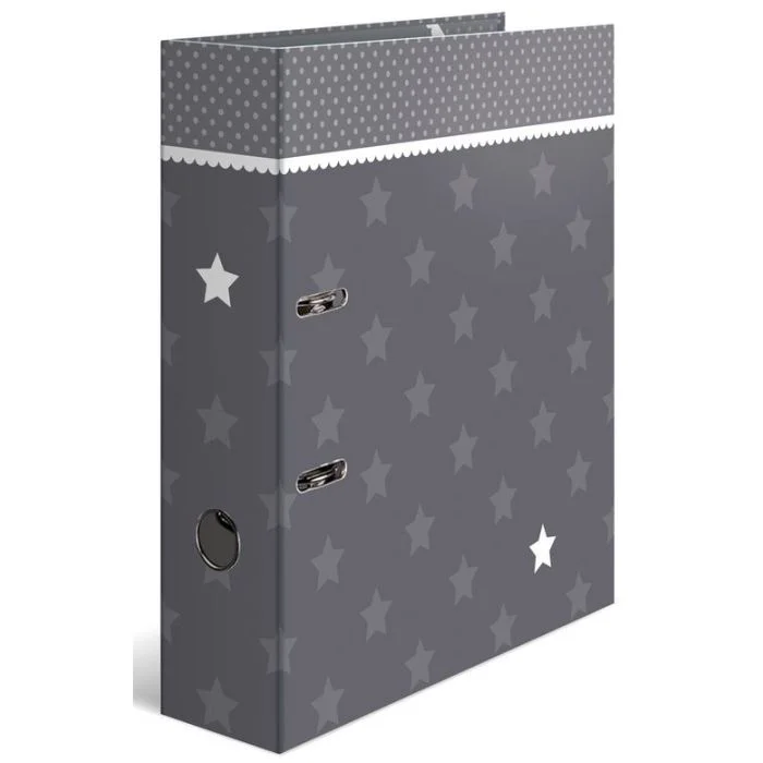 Classeur à levier A4 avec motifs étoilés Gris avec bordure HERMA Stars. Numéro article 7189