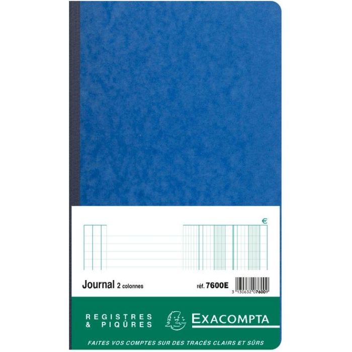 Journal comptable à 2 colonnes, numéroté d'Exacompta. Numéro article 7600E