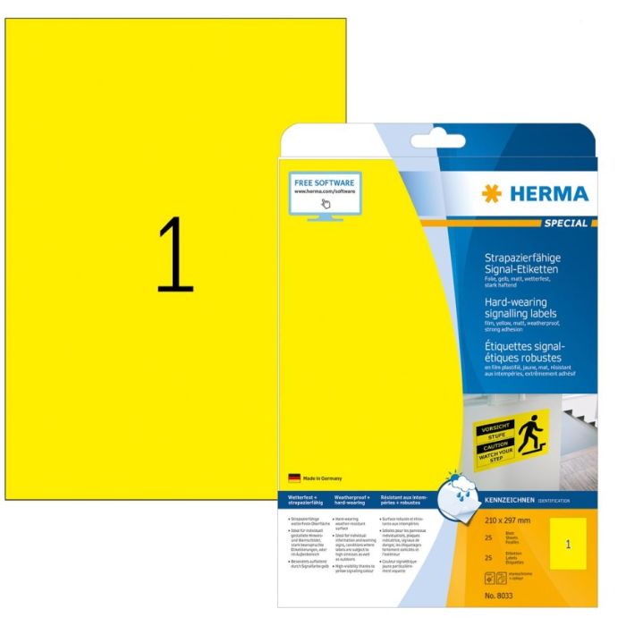 Etiquettes adhésives de signalétique - Jaune - 210 x 297 mm HERMA Lot de 25
