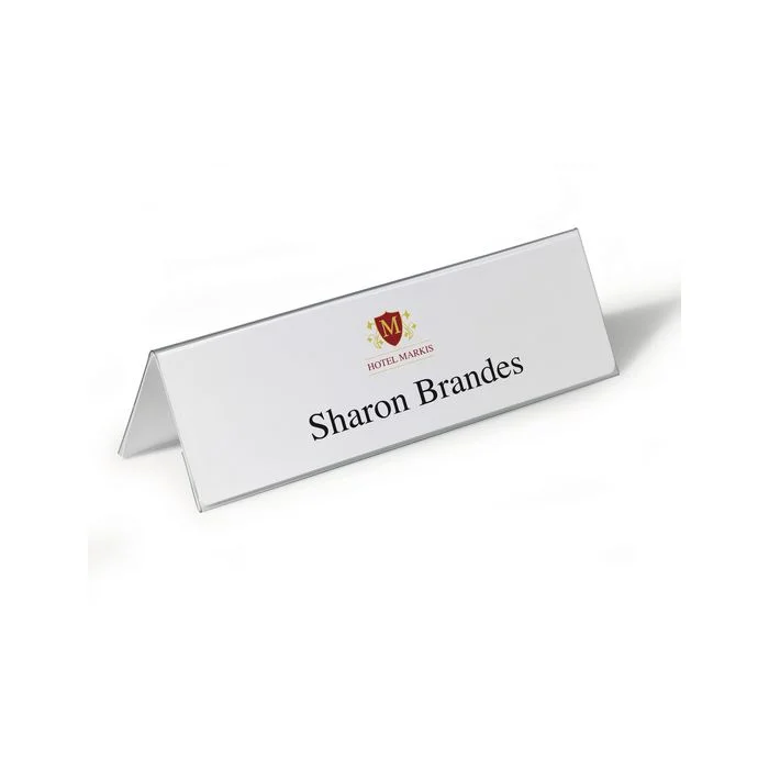 Chevalet porte-nom transparent 297 x 105 mm en forme de toit DURABLE. Numéro article 8053-19