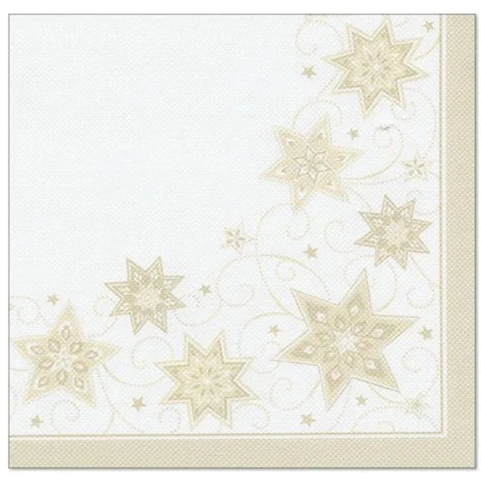 Serviettes de table en papier à couleur Blanc motifs de Noël - Just Stars (étoiles), Collection Royal. Numéro article 81999