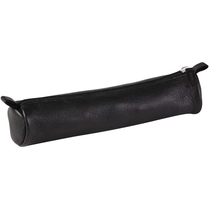 Trousse ronde pour stylos - Cuir Noir - 18 cm CLAIREFONTAINE