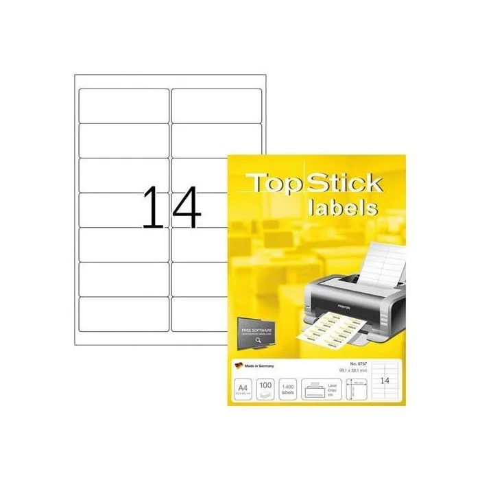 - 100 feuilles A4 par pochette, soit 1 400 étiquettes.