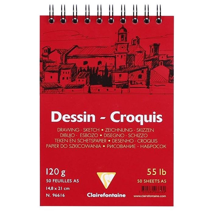 Bloc A5 pour dessins et croquis en papier blanc CLAIREFONTAINE. Numéro article 96616C