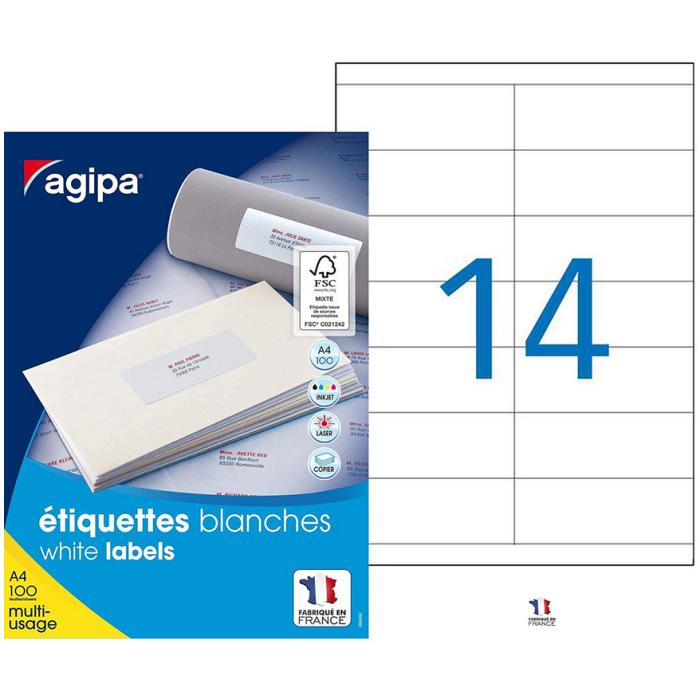 - 100 feuilles A4 par pochette, soit 1400 étiquettes.