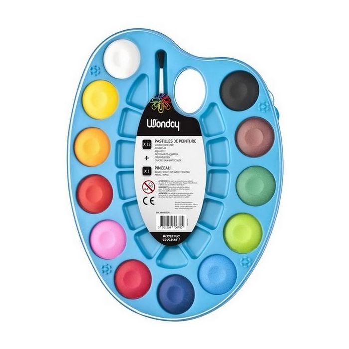 Palette de peinture de 12 pastilles de gouache de WONDAY. Numéro article APN450191
