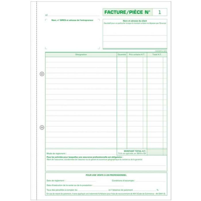Auto-Entrepreneur Facture - Carnet 210 x 297 mm EXACOMPTA autocopiant Dupli