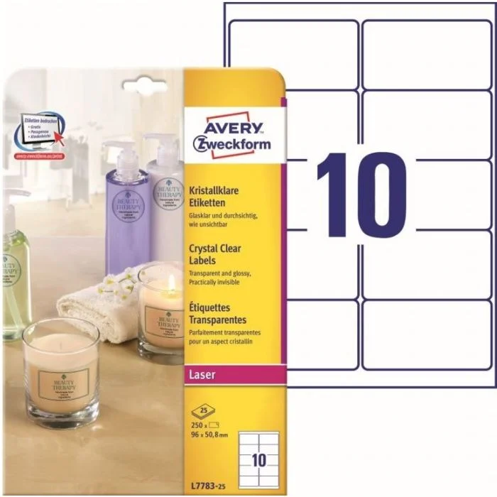 Étiquettes transparentes autocollantes très résistantes 96 x 50,8 mm AVERY. Numéro article L7783-25