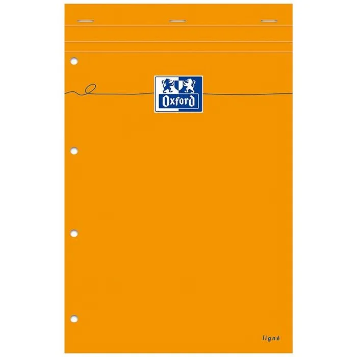 Bloc Notes ligné avec marge et perforé A4 - Papier blanc OXFORD