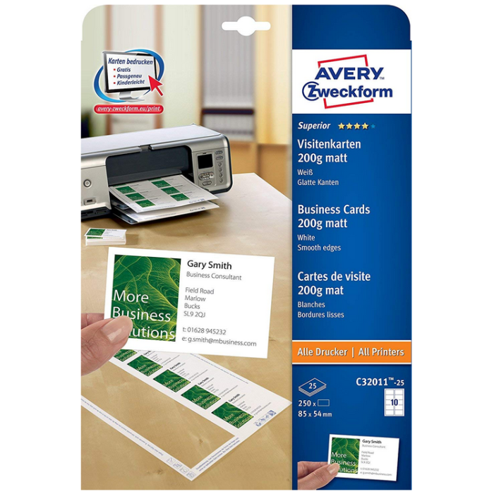 Cartes de visite à personnaliser 85 x 54 mm AVERY Quick et Clean. Numéro article C32011-25