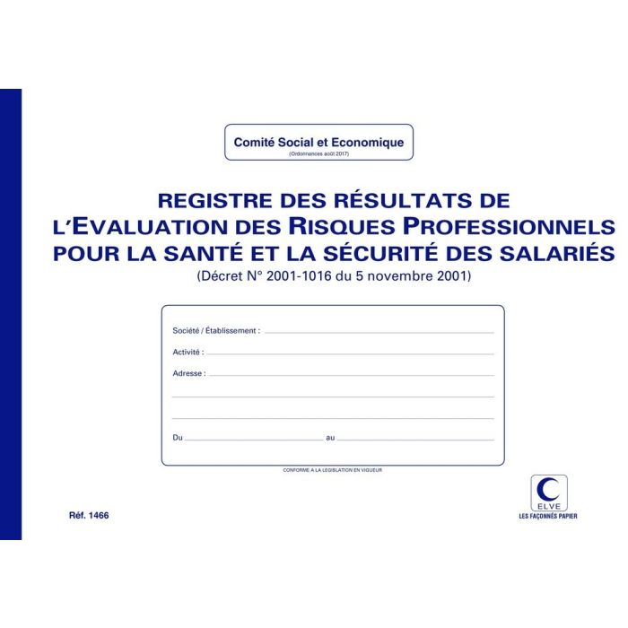 Registre des évaluations des risques professionnels (ERP) pour la santé et la sécurité des Salariés de l'entreprise ELVE. Numéro article 1466