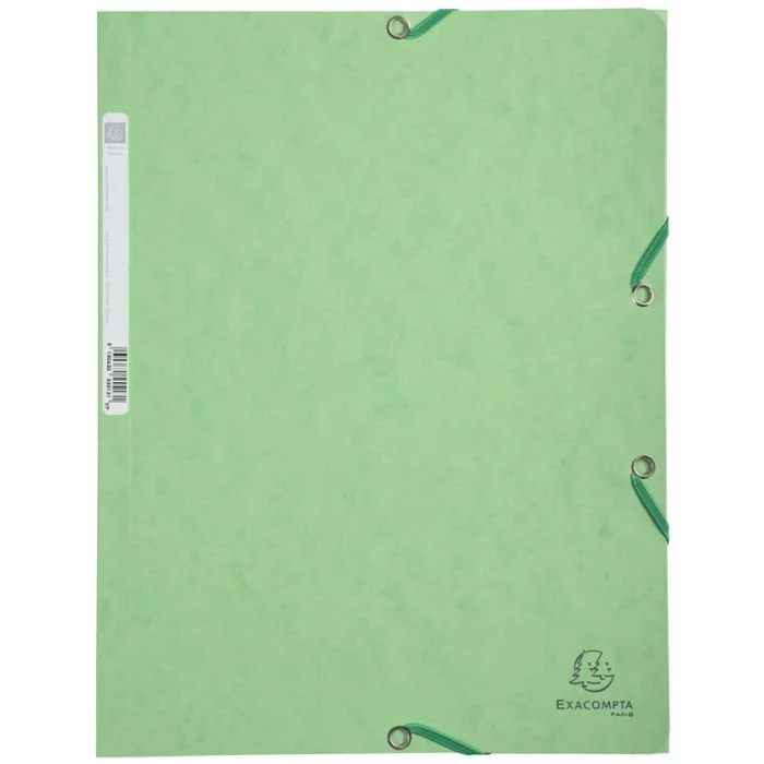 Chemise cartonnée à élastiques et 3 rabats carte lustrée 400g couleur Tilleul EXACOMPTA. Numéro article 55513E