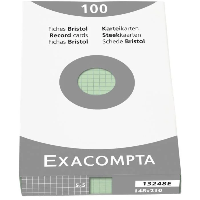 Fiches Bristol quadrillées - 148 x 210 mm - Vert EXACOMPTA Lot de 100