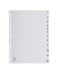 Jeu de 12 Intercalaires numériques en PP gris - 1 à 12 - 245 x 297 mm EXACOMPTARéférence : AC03-2912E