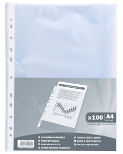 Pochettes perforées transparentes.
