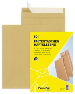 Pochettes auto-adhésives kraft à soufflet.