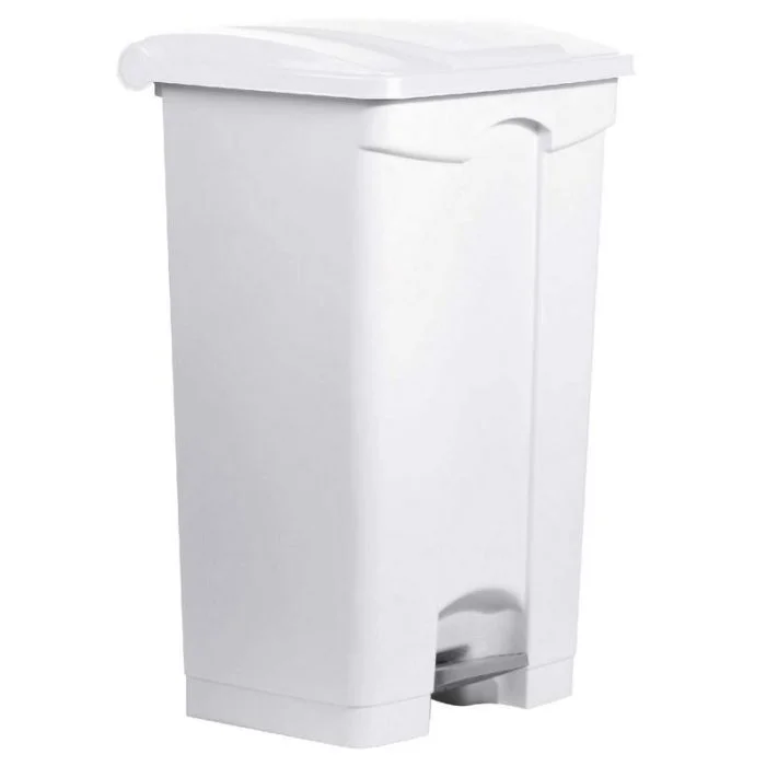 Grande poubelle blanche 90 litres à pédale avec couvercle pour les déchets. Numéro article H2402305