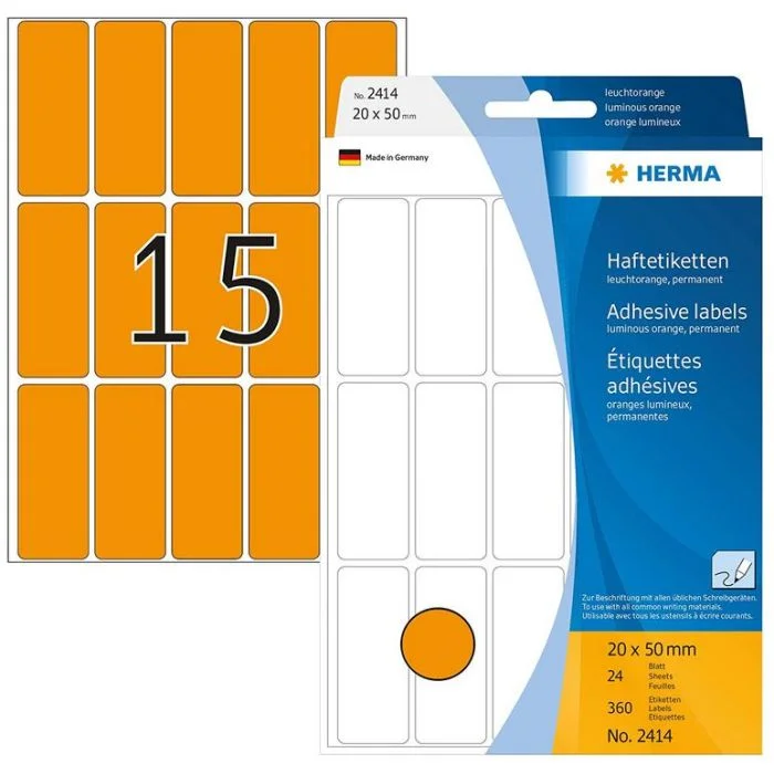 Étiquettes rectangulaires adhésives oranges 20 x 50 mm HERMA. Numéro article 2414