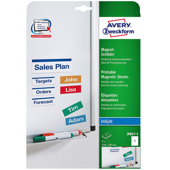 Etiquettes Aimantées A4 - 210 x 297 mm - Blanc AVERY Lot de 5
