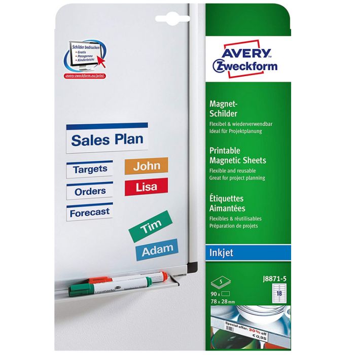 Etiquettes Aimantées - 78 x 28 mm - Blanc AVERY Lot de 90