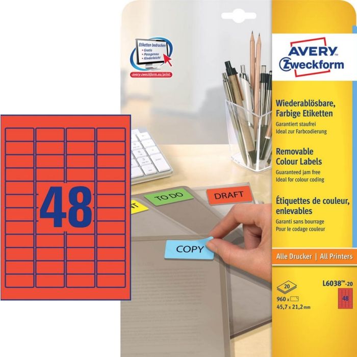 Mini-étiquettes AVERY pour copieurs, imprimantes jet d'encre et laser. Numéro article L6038-20